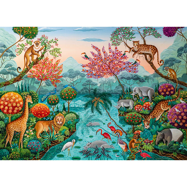 The French artist Marie Amalia Bartolini came into early contact with art as the daughter of an under glass painter and a sculptor. Her own work offers a magnificent escape from reality from adulthood into a childlike perception of the world, which in her case is full of colours and wonders and populated by animals living peacefully together. 1500 pcs Puzzle dimensions: 60 x 80 xm