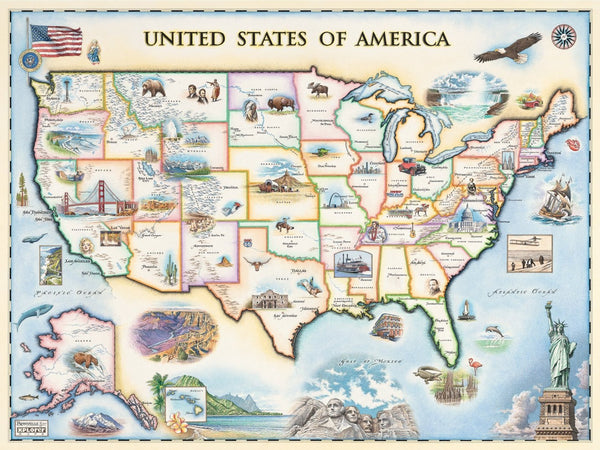 This Masterpieces puzzle, USA Map, is the perfect souvenir to puzzle and plan your next travels. Each custom-crafted map is incredibly detailed, showing historic places, popular attractions, indigenous wildlife, mountain ranges and much more.