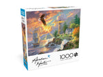 Set sail for a scenic adventure with this 1000-piece jigsaw puzzle featuring the artwork of Abraham Hunter. A tall ship glides past a rocky coastline as waves crash below a shining lighthouse and a bald eagle soars overhead. With vibrant colors and majestic details, this puzzle offers a breathtaking glimpse of coastal beauty. Finished size is 26.75 x 19.75 inches. Recommended for ages 14+