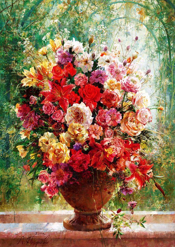 A beautiful bouquet of flowers!Includes a box stand to make solving the puzzle easier.