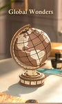 • About: Explore the beauty of the world in miniature form with the Global Wonders Rolife TGM01 3D Wooden Puzzle! This elegant rotating globe model lets you build your own functional world globe, complete with intricate wooden details and smooth mechanical motion. A perfect blend of art, craftsmanship, and education—ideal for display, gifting, or as a fun, mindful building project.