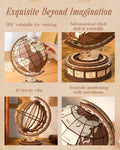 • Intricate Mechanical Design: Featuring precision laser-cut wooden pieces, this puzzle assembles into a beautifully detailed globe that rotates gracefully once complete. Each piece fits perfectly—no glue required!