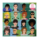 History of Hairdos 1000 Piece Puzzle de Galison présente 24 coiffures bien connues de 1870 à 1990, illustrées par Anne Bentley.