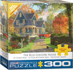 Country Setting Blue Home est une retraite paisible. Pièches de puzzle fortes de haute qualité. Fabriqué à partir de planche recyclée et imprimée avec de l'encre à base de légumes....