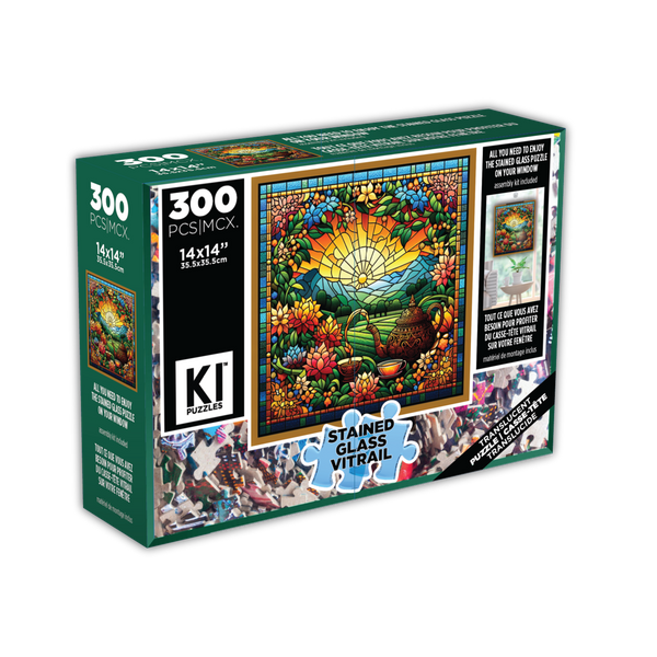 All you need to enjoy the stained glass puzzle on your window. Assembly kit included.