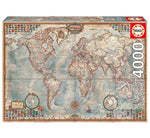 Une carte du monde avec un bord vintage chic montre le monde avec un éventail impressionnant de détails cartographiques ainsi que quelques drapeaux des nations du monde entier.
