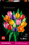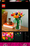 • 5 LEGO® TULIPS – The bouquet includes 5 varieties of tulips in various colors and stages of bloom; there are green buds, purple closed tulips and red, yellow and pink opened tulips