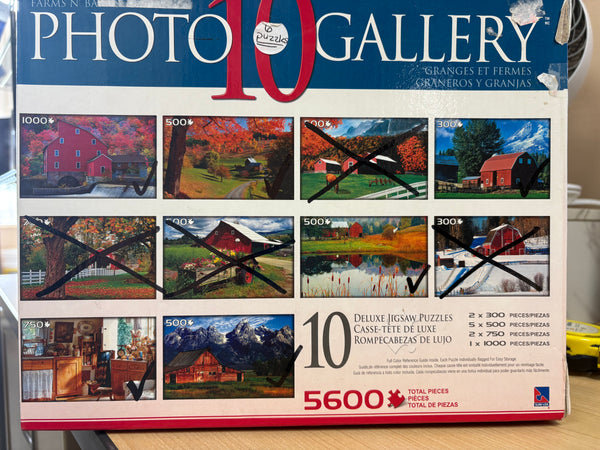 Nombre de pièces: 1 x 300 piece puzzle, 3 x 500 piece puzzle, 1 x 750 piece puzzle, 1 x 1000 piece puzzle