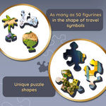 • Jusqu'à 50 figures de puzzle uniques représentant des attributs de voyage d'été. Le motif décoratif à l'inverse sera apprécié par chaque amateur de puzzle