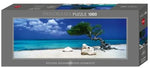 La plage, le ciel bleu et l'arbre constituent cette vue à couper le souffle.
