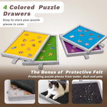 • Colored Storage System - Four color-coded drawers streamline piece organization and temporary storage of unfinished pieces and parts. Whenever you need extra space, cover your unfinished game with the enclosed felt sheet, shut the drawers and slide the while construction under the couch or bed for space-saving storage.