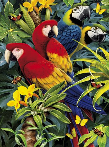 Ce puzzle coloré de Clementoni présente une paire de macaws. Effet magique 3D. Lunettes 3D incluses.