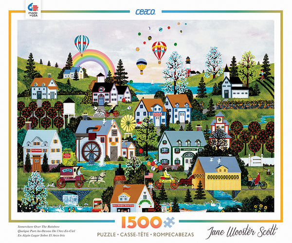 Une ville qui se trouve quelque part au-dessus de l'arc-en-ciel. Ce puzzle présente des chevaux, des gens, des montgolfières et plus encore.