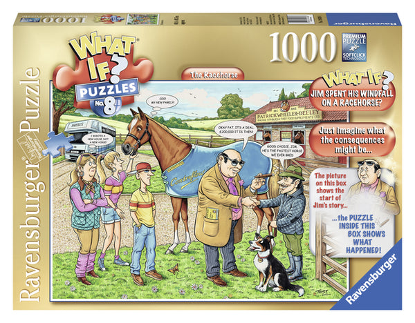 Ce whatif? Puzzle présente un scénario humur d'une famille achetant un cheval de course