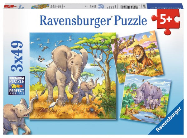 3 puzzles différents mettant en vedette des animaux africains sauvages dans leurs habitats indigènes.