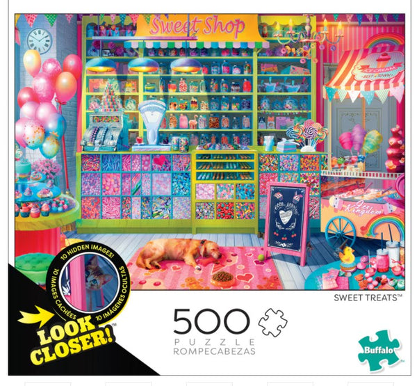 Ce charmant puzzle de 500 pièces, Sweet Treats, est de la série Look plus proche de Buffalo Games. Ce puzzle propose un magasin de bonbons vif et coloré rempli de...