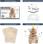 Le puzzle 3D inspiré du modèle du système solaire. Tournez la poignée, les 8 planètes se déplaceront et la lumière du soleil sera allumée. Il simule les trajectoires des planètes.