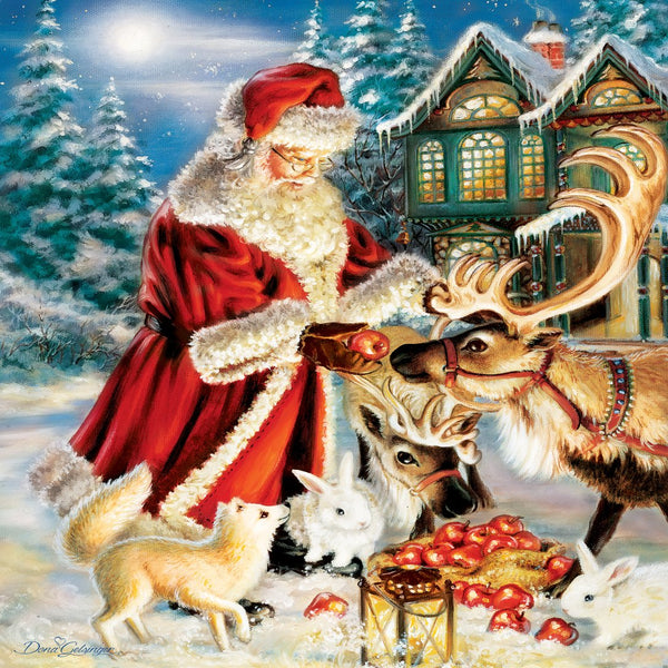 Le Père Noël nourrit ses rennes et d'autres animaux.