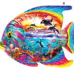 Ce puzzle en forme de poisson tropical de 1000pc. Le puzzle de poisson tropical explose avec un scelfe coloré sur le récif corallien.  Comprend trois pièces de forme spéciale dessinées à la main dans la diéline. Pour réduire leur impact sur notre environnement, le panneau de puce utilisé dans ces puzzles est fait de matériaux recyclés.