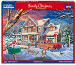 La maison est décorée de bobbles et de lumières créant un pays des merveilles de vacances pour la famille et les passants. Maman et papa attendent à la porte pour saluer leurs invités tandis que les enfants regardent de la chaleur à l'étage et que Santa agit par la fenêtre. Les autres enfants sont à l'extérieur en ajoutant la touche finale à leur bonhomme de neige pendant que le chien supervise et le chat prend son tour à la montre de quartier. Le designer Victor McLindon a créé un puzzle de 1000 pièces qui vous mettra dans l'esprit des Fêtes, quelle que soit la période de l'année.