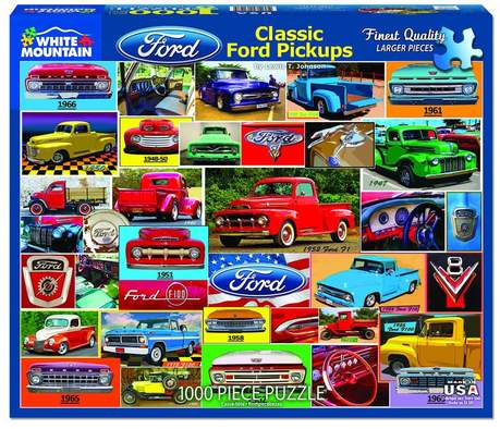 Le designer Lewis T. Johnson a garé cette collection de micros Ford sur un puzzle de 1 000 pièces. Choisissez votre décennie et votre couleur préférée, augmentez la radio, mettez...