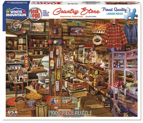Voici un autre puzzle amusant du designer Lois B. Sutton. (Ses autres puzzles, salle d'artisanat, salle d'artisanat et cuisine rétro, sont très populaires!) Plus de vingt images ne sont pas vues dans l'image sur la couverture de la boîte - mais elles sont sur le puzzle lui-même, vous devrez donc accepter le défi et terminer le puzzle pour les trouver. Mais… .. ne pas panique - une feuille de triche sera incluse dans la boîte.