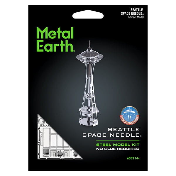 The Space Needle is a tower in Seattle, Washington. It is a major landmark in the Pacific Northwest region of the United States and a symbol of Seattle. Located at the Seattle Center, it was built for the 1962 World's Fair, during which time nearly 20,000 people a day used the elevators, with over 2.3 million visitors in all for the World Fair. The Space Needle is 605 feet high at its highest point and 138 feet wide at its widest point and weighs 9,550 tons. These amazingly detailed DIY models start as 4” square steel 3D models. Simply snip out the pieces and bend the tabs through corresponding connection points. Easy to follow instruction included. Tweezers or small needle nose pliers are suggested to facilitate assembly. 1 sheet of metal