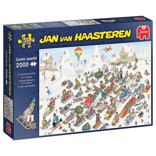 Un puzzle de Jan Van Haasterren est bien plus qu'un simple puzzle, c'est une série d'aventure avec des personnages familiers jouant les rôles principaux dans un décor sans fin plein de détails absurdes. Découvrez les aventures folles de la famille Jan Van Haasterren!