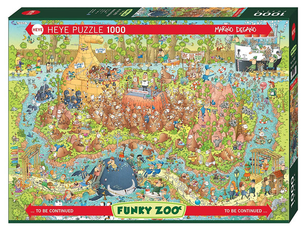 Dans le puzzle Heye, australien Habitat, une représentation comique d'un zoo australien est illustrée.