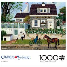 Ce puzzle à 1 000 pièces, au printemps, est de l'artiste Charles Wysocki. Cette œuvre nostalgique dépeint un joli chalet situé à Ravenswhip Cove. Le printemps est dans les airs avec des fleurs fleuries entourant la propriété familiale. Un homme lit le journal sur la pelouse avant tandis que son chien est assis dans l'herbe en profitant de la météo. En arrière-plan, une voile d'un navire peut être vue dominante sur la maison.