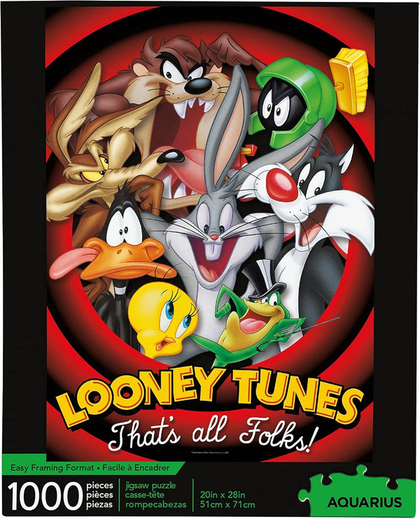 Spend hours of fun with Bugs, Daffy, Sylvester, Marvin, Tweety, Coyote, and Michigan T Frog while you assemble this super colorful 1000 piece puzzle.