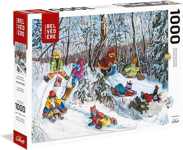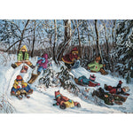 Une autre grande peinture de Pauline Paquin d'enfants appréciant la neige