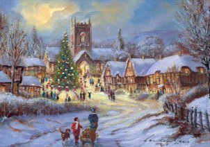 Les fêtards se rassemblent autour de l'arbre de Noël sur le carré d'une petite ville anglaise.