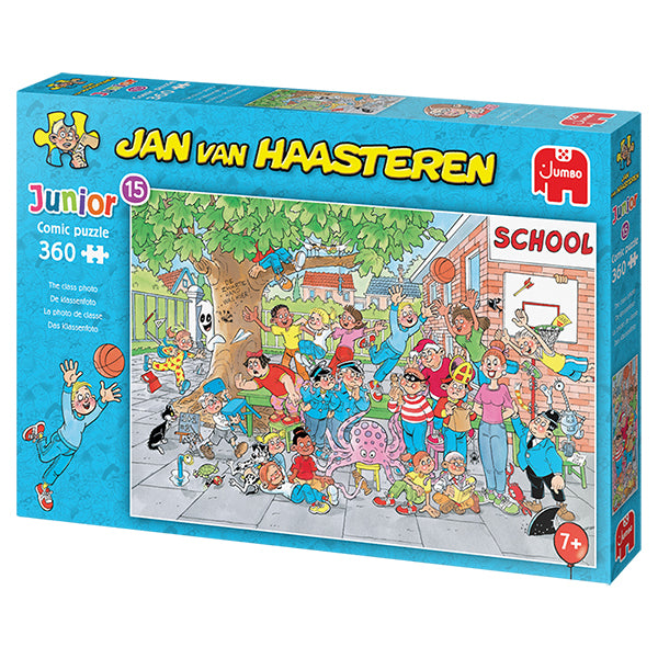Jan van Haasteren Junior introduces children as young as 5 years to the absurd world of these famous puzzles. They take their first steps into the humorous illustrations of Jan van Haasteren and make progress with different piece counts and difficulty levels.
