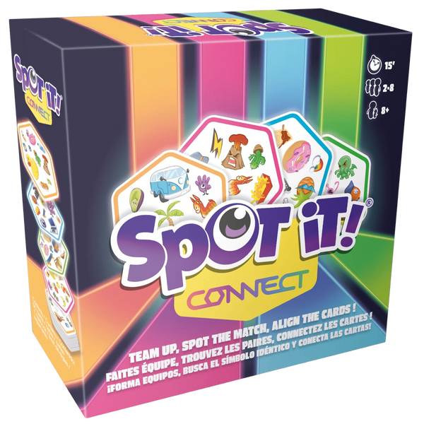 Fun, fast-paced and frantic, Spot it! Connect is THE ultimate reflex game for a wild time!