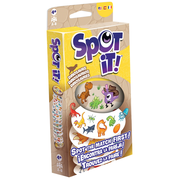 A game of observation & speed! In Spot it, there is only one common symbol between two cards. Be the first to spot the match to win! For more fun, we decided to mix dinosaurs...