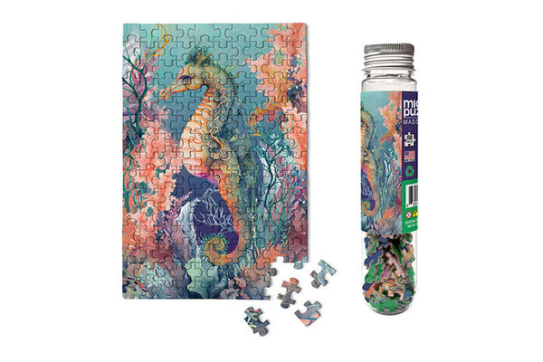 Piece together this giant seahorse as it gracefully navigates underwater, flanked on each side by a vibrant coral showcase. Indulge in bite-sized aquatic fun that guarantees an enjoyable, colorful puzzle...