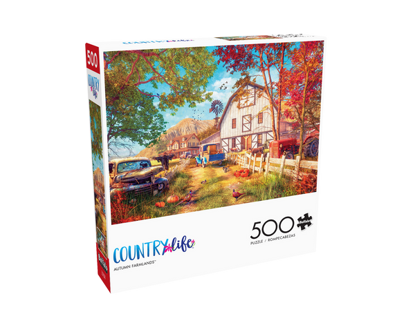 Ce puzzle de 500 pièces, Automn Farmlands, fait partie de la collection Country Life de Buffalo Games et de l'artiste Dominic Davison. Une grange et une ferme charmantes s'assoient le...