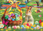 Célébrez les vacances de Pâques avec ce puzzle de printemps coloré. Un mignon lapin regarde sur des œufs décorés brillants dans une cour verte luxuriante. Deux paniers de Pâques soutenus...