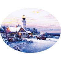 Ce puzzle présente un phare en hiver.