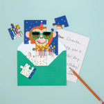 Cat Party Greeting Card Puzzle from Mudpuppy is a 12 piece postcard puzzle with an image of colorful cats on one side and space to write a message to someone on the other side. Package comes with puzzle put together, write the message on back, break up the pieces, place in the envelope and mail.