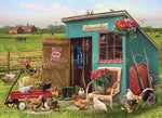 Le Happy Hen House, au milieu du pâturage de la ferme, est rempli d'œufs frais et de poulets itinérants gratuits. 1000 morceaux de Farm House Fun.