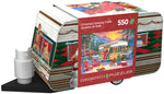 Get ready for cozy campfire vibes and festive fun with the Christmas Camping Trailer Puzzle Tin! Shaped like a vintage holiday-decorated camper, this unique tin doubles as a cheerful collectible and a storage box for the included 550-piece premium jigsaw puzzle.