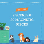 Curieux, attentionné, gentil. Inspirez votre petit amoureux des animaux à devenir un vétérinaire avec cela au Vet Shine Bright Magnetic Play set de Petit Collage. Avec 2 scènes et 29 pièces magnétiques dans une boîte portable, cet ensemble est conçu pour des heures de jeu imaginatif, que ce soit à la maison ou sur le pouce. Parfait pour les 3 ans et plus, nos ensembles de jeux magnétiques brillants brillants sont conçus pour encourager les enfants à rêver grand et brillant!