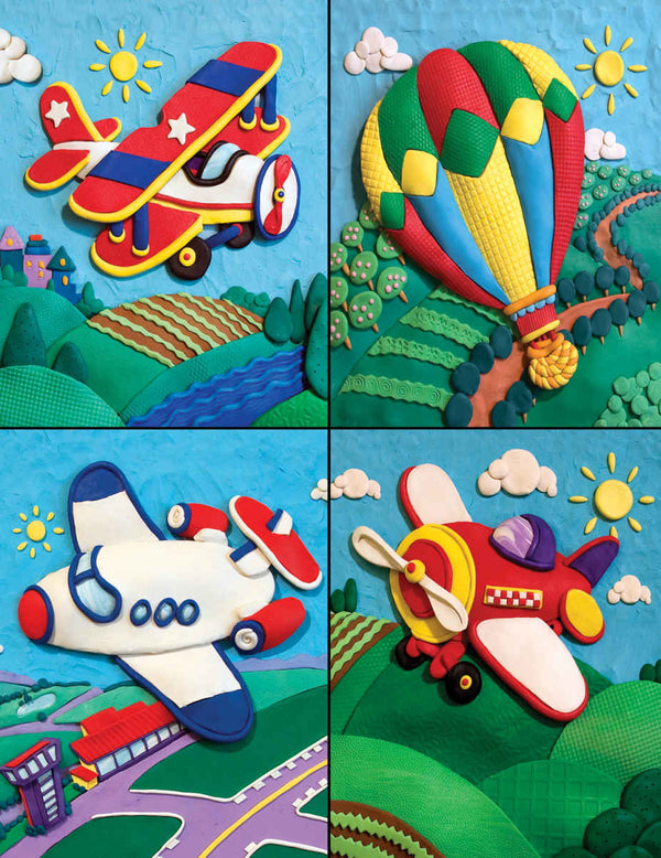 Quatre types de machines volantes différentes "peintes" sur une toile en argile: ce puzzle est amusant de toutes sortes de façons! Les couleurs vives et les lignes fortes de ce puzzle le rendent amusant à assembler et laisse votre imagination monter en flèche.