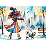 Immergez-vous dans un monde de charme de haute couture et d'hiver avec ce puzzle frappant, avec une femme en couture vibrante promenant son chat impeccablement habillé à travers un paysage urbain couvert de neige. Son manteau, une démonstration éblouissante de motifs audacieux et de textures luxueuses, transforme les rues glacées en une piste chic, tandis que son compagnon félin ajoute une élégance fantaisiste avec son manteau élégant et sur mesure. Cette scène captivante mélange le style et la sophistication, ce qui en fait un ajout parfait à toute collection.