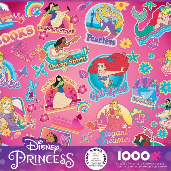 Ce puzzle coloré de 1000 pièces est une image de princesses Disney dans un style vitrail.
