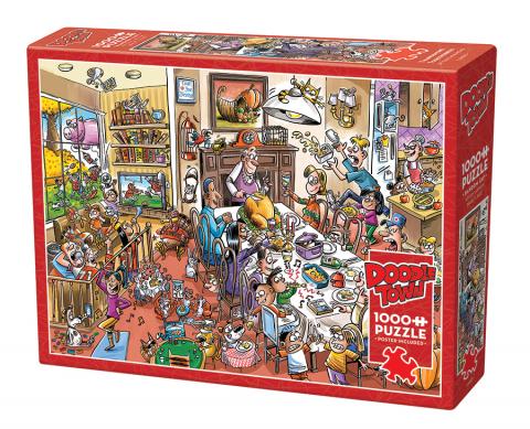Il n'y a rien de tel que le chaos de la convivialité de Thanksgiving. Pas besoin d'embellir votre histoire post-merci lorsque vous avez un cousin fou ou un unkle non intéressé pour garder les choses intéressantes. Cette histoire raconte plus que le match de football du Jour de la Turquie ou grand-père en train de sculpter la dinde - vous êtes dans 1000 morceaux de pur dessin animé de plaisir lorsque vous découvrez les chiens, les chats et les rats qui ont leur propre fête, tandis que les enfants à l'extérieur essaient de prendre un cochon volant, hein? Pendant ce temps, personne ne remarque que Little Joey donne son dîner au chien ou à la dinde vivante qui traîne dans un pull dans votre salon! Juste bon plaisir de la mode dans ce puzzle de doodletown.