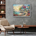 Un chalet confortable avec un phare se dresse le long des rives entouré de fleurs en fleurs colorées. Le soleil se lève sur une vue magnifique sur la mer. L'eau...