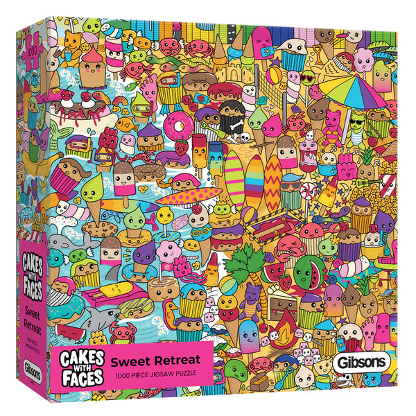 Ce puzzle de 1000 pièces a été illustré par la talentueuse artiste Amy Crabtree. Regardez toutes ces friandises sucrées qui s'amusent sur une plage bondée!